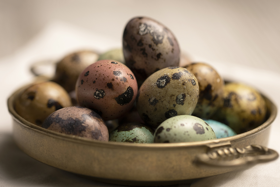 Húsvét előtti lázban égve, ma fürjtojásokat színeztünk, ismét természetes színezőket használva. A fürjtojásnak jóval rövidebb a főzési ideje mint a tyúktojásnak, forrástól számított 2,5 percen belül emeljük is ki őket a főzővízből és mehetnek is a kurkumás, áfonyás, vöröshagymás, spirulinás, lilakáposztás vagy céklaporos fürcsibe. Minél tovább fürdőznek a színezőkben, annál intenzívebb színük lesz, de még mindig a pasztell tartományban maradva.