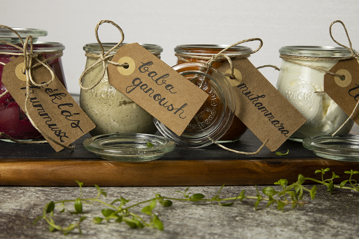 A céklás csicseriborsó krém, a füstös padlizsán- és sültpaprika krém, valamint a csepegtetett joghurt a jellegzetes keleti fűszerekkel mind olyan fogások, amik nem csak pöpec reggeli kenőzők, vagy guszta előételek, de jól jöhetnek grillezések, vagy piknikezések alkalmával is. Pita, házi lepénykenyér, vagy néhány darab török perec bárányfasírt a húsevőknek, marinált olajbogyók meg néhány fetával töltött paprika- és már kész is a “terülj terülj asztalkám” .